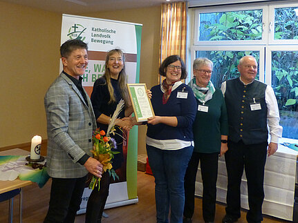 Regensburg / Haus Werdenfels. Am Sonntag, 26.10.2025 gab es Grund zum Feiern bei der Diözesanversammlung der Katholischen Landvolkbewegung. Die Diözesanebene des Verbands wurde für ihr Umweltmanagement mit dem „Grünen Gockel“ ausgezeichnet. Bei der Verleihung des Zertifikats beglückwünschte Beate Eichinger, die Umweltbeauftragte des Bistums, die KLB zu diesem Erfolg und würdigte in ihrer Laudation das gezeigte Engagement.