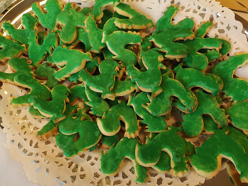 Für den nun in Gang gesetzten Prozess des Umweltmanagements, das in den nächsten Jahren laufend geprüft und weiterentwickelt werden soll, wünschte Beate Eichinger der KLB Diözesanebene alles Gute und bot auch weiterhin Zusammenarbeit und Unterstützung an. Im Anschluss wurde mit einem Glas Sekt auf das freudige Ereignis angestoßen und als kleines Geschenk gab es für alle Anwesenden einen gebackenen grünen Gockel. Auch im Gottesdienst stellte KLB-Seelsorger Christian Liebenstein den Grünen Gockel ins Zentrum.