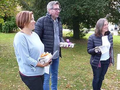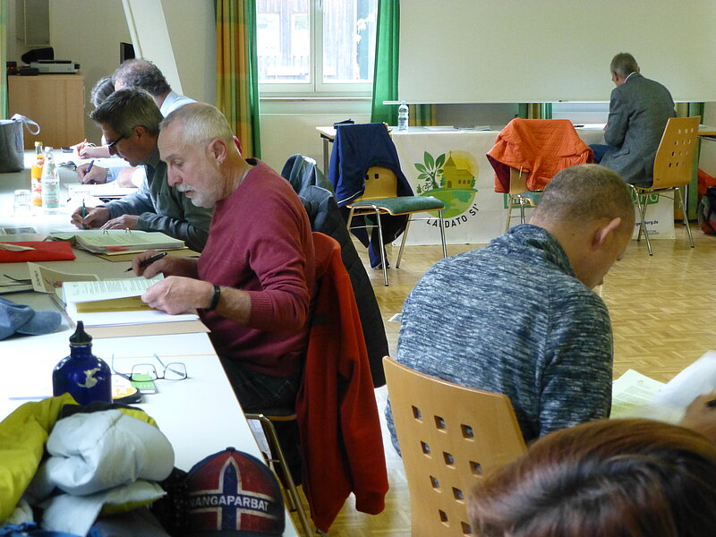 In fünf Kursmodulen mit 22 Lehreinheiten vertiefte die Kursgruppe ihre Kenntnisse in den Kernbereichen Energiesparen bei Stromverbrauch und Heizung, Mobilität, ökofairen Einkauf, Nutzerverhalten und spiritueller Motivation. Sie wurden in das sog. "Grüne Buch" eingeführt, in dem die Checklisten und Herangehensweisen für eine systematische Erstellung der Ökobilanz zusammengefasst sind. Mit Hilfe dieses Überblicks kann der ökologische Fußabdruck ihrer Pfarrei bzw. Verwaltungseinheit oder Bildungseinrichtung kontinuierlich verbessert werden. Die ersten beiden Kurstage mussten coronabedingt als Online-Seminare stattfinden, aber die folgenden Kursmodule in Präsenz wurden von je einer Praxiseinheit ergänzt, z.B. Besuch eines mobilen Hühnerstalls oder Vorführung verschiedener Reinigungsmittel.