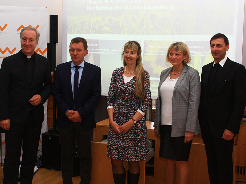 Am Freitag, 10. Mai 2019, fand im Senatssaal der Ostbayerischen Technischen Hochschule Amberg-Weiden die Auftaktveranstaltung für das neue Klimaschutzkonzept der Diözese Regensburg statt. In festlichem Rahmen wurden die ersten Ergebnisse der Datenauswertung, sowie der zeitliche Rahmen und die Ziele des neuen Klimaschutzkonzeptes erläutert. Die Präsidentin der Technischen Hochschule bedankte sich für die Kooperation bei diesem Projekt. "Seit Gründung unserer Hochschule vor 25 Jahren gehört die Forschung zur nachhaltigen Energieversorgung und zur Steigerung der Energieffizienz zu unseren Kernkompetenzen an der OTH Amberg-Weiden", so Hochschulpräsidentin Prof. Andrea Klug. Der Generalvikar des Bistums Regensburg, Michael Fuchs machte sich den Grundgedanken der Enzyklika Laudato sí zu eigen und betonte: "Alles hängt mit allem zusammen". Das Klimaschutzprojekt zeige "den Wert jeder einzelnen Maßnahme, und sei sie noch so klein, wie auch den Wert jeder einzeln mitverantwortlichen Person in unserer Diözese auf".