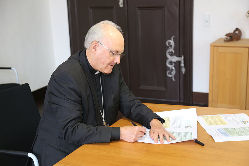 Im Rahmen der Ökumenischen Schöpfungszeit findet in der Diözese Regensburg heuer nicht nur der traditionsreiche Schöpfungstag statt. Nach intensiven Beratungen in verschiedenen Gremien der Bistumsleitung wurden heute, am 15. September, die aktuellen Schöpfungsleitlinien 2021 als programmatische Selbstverpflichtung der Diözese von Bischof Dr. Rudolf Voderholzer unterzeichnet. In den Leitlinien werden die Bemühungen um Klimagerechtigkeit als pastorale Herausforderung qualifiziert, die alle Handlungsfelder umfasst. Die Diözese Regensburg legt mit diesen Leitlinien Zeugnis für ein schöpfungsbewusstes Glaubensverständnis ab.